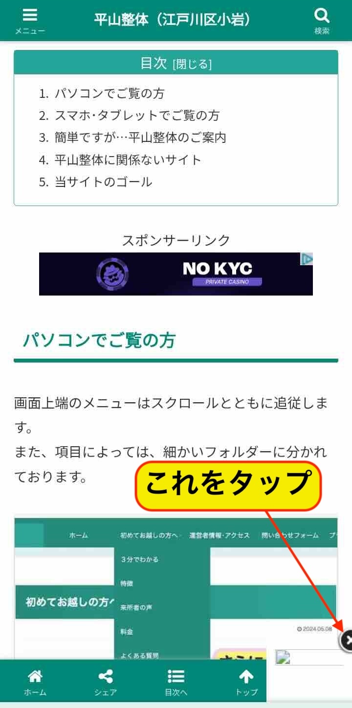 隅々までご覧いただく前に閲覧目的に辿り着かずに、