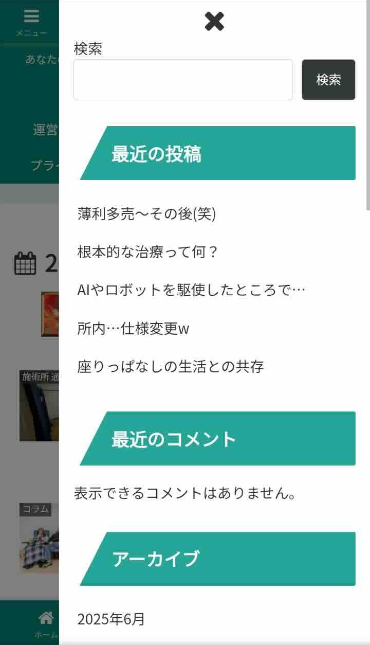 画面左上のメニューをタップすると、細かいメニューがチェックできます。