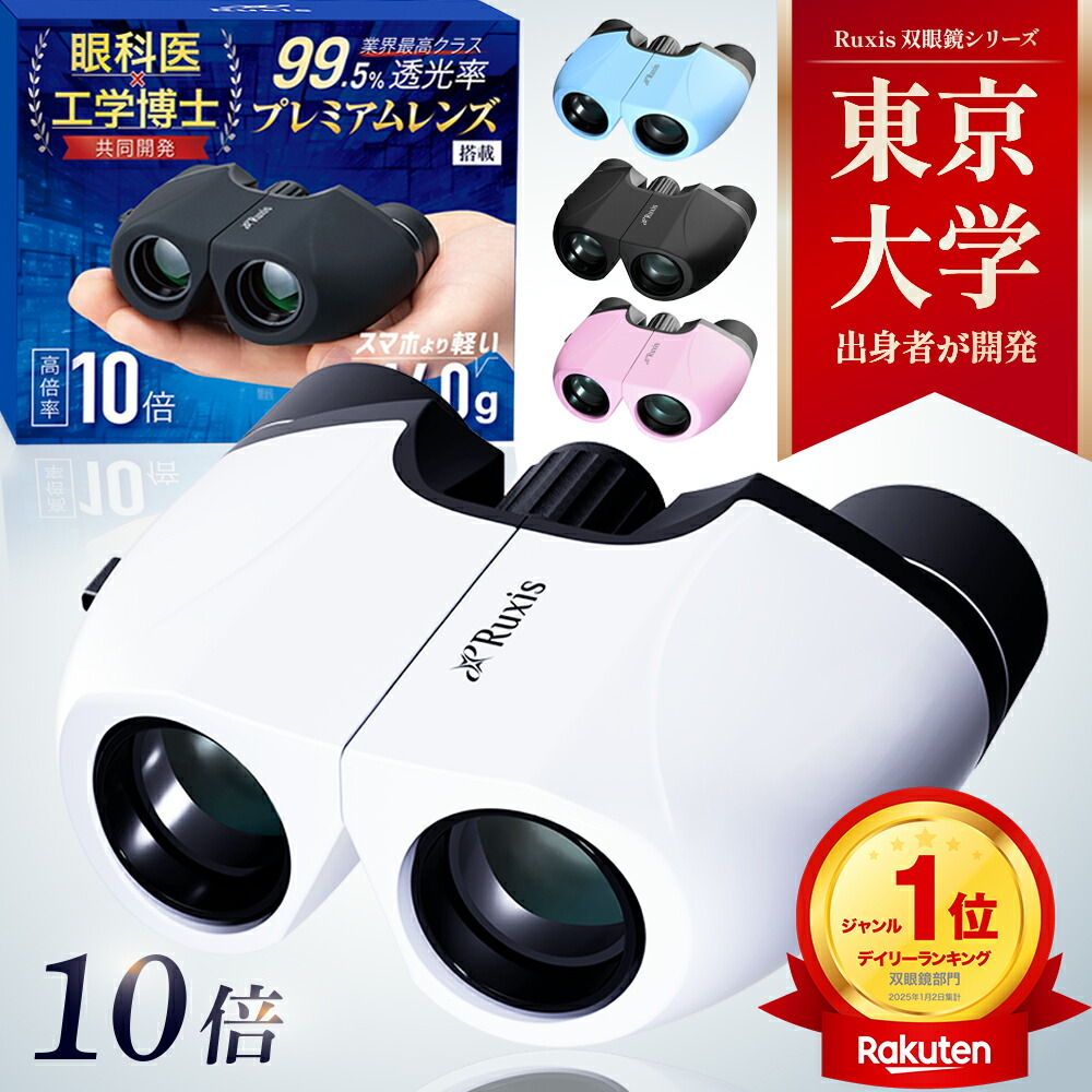 【楽天市場】【眼科医×東大卒の工学博士が開発】 双眼鏡 10倍 【TVで話題!最先端光学レンズ搭載】 コンサート オペラグラス ライブ 超軽量 140g 高倍率 スポーツ観戦 コンサート用 ライブ用 推し活 ドーム 野球観戦 IPX3防水 メガネ対応 軽い ルクシス Ruxis 【日本メーカー保証1年】:日々和工業 楽天市場店