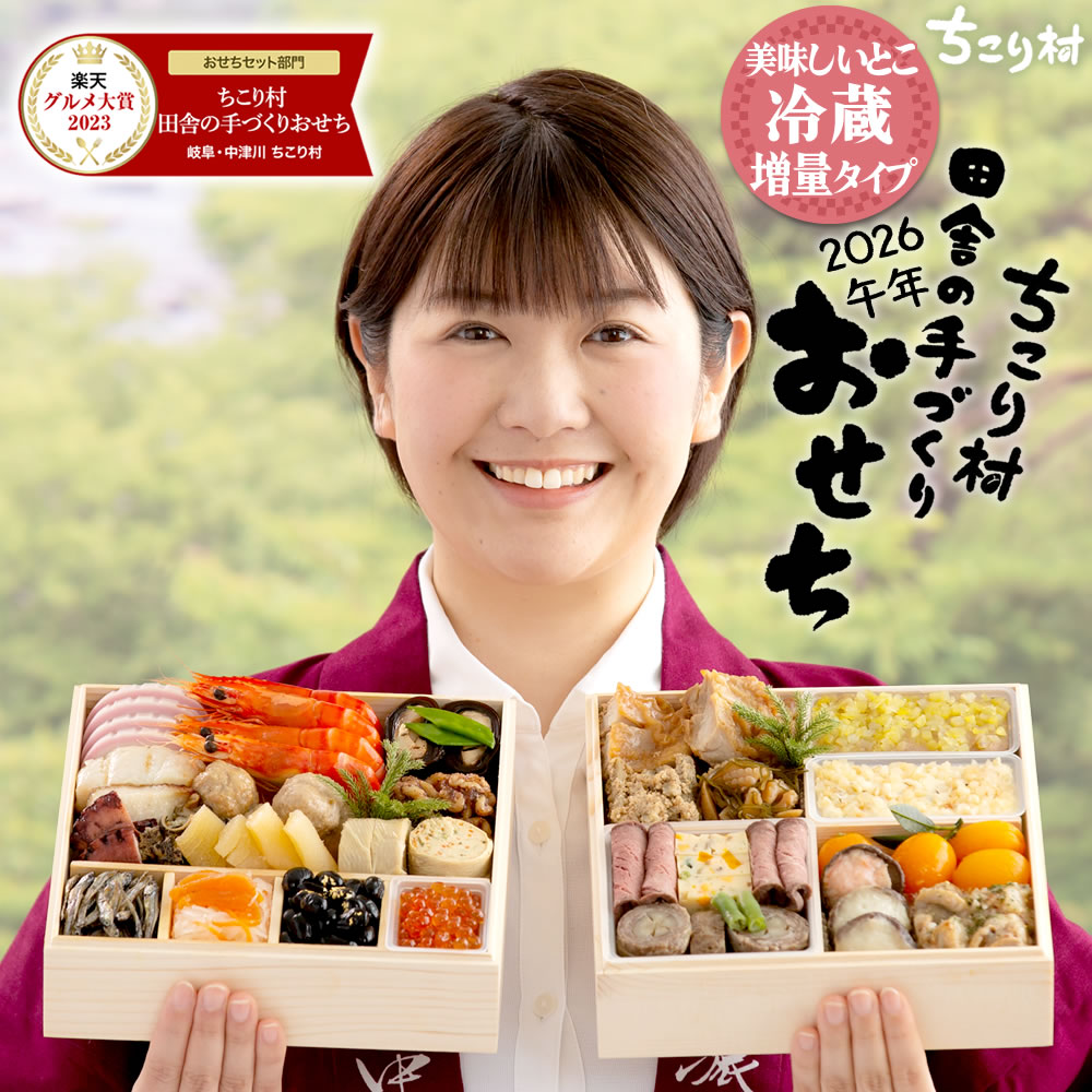 【楽天市場】\楽天グルメ大賞 受賞 & 楽天総合ランキング9年連続1位/ おせち 2026 冷蔵 便でお届け / ちこり村 田舎の 手づくり おせち料理 【人気2品増量】 二段重 3〜4人前 送料無料 / 薄味 冷蔵おせち 御節 お節 お節料理 和風 栗きんとん フルーツチーズ 飛騨牛 人気:岐阜・中津川 ちこり村