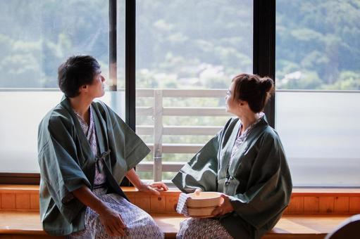 • 火照った体を冷ますために脱衣所から一服できるスペースへ…。